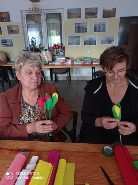 A poniżej zdjęcia z warsztatów plastycznych (tulipany z bibuły), w których uczestniczyły Panie z naszego Koła.